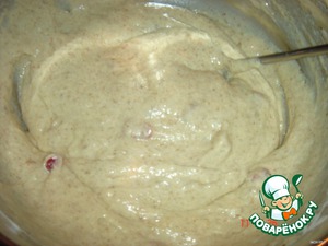 Сливочное масло растираем с сахаром и яйцами, добавляем наше банановое пюре, затем муку с разрыхлителем. Замешиваем не густое тесто.