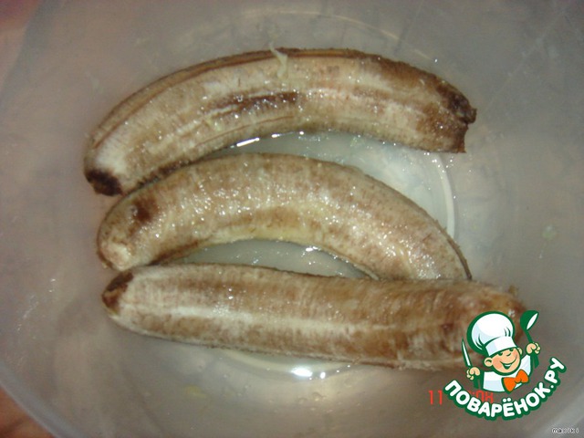 Бананы и сок половины лимона смешать блендером.