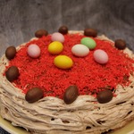 Сверху на торт посыпать кокосовой стружкой. И выложить яйца. Наш торт готов.