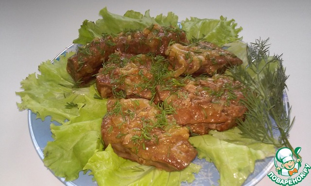 Рецепт увидела в кулинарной книге Алии. Рецепт, как я люблю - быстро, доступно, вкусно. Печень очень нежная. "Диетологи настоятельно рекомендуют включать говяжью печень в меню тем, кто ведет активный образ жизни, в том числе и спортсменам, поскольку она содержит белок с оптимальным набором аминокислот, необходимых для организма. Кроме того, особую ценность этот продукт имеет благодаря высокому содержанию селена, который является мощным антиоксидантом, уменьшающим риск развития сердечно-сосудистых заболеваний и злокачественных новообразований. Говяжья печень – кладезь витаминов, особенно много в ней витаминов А, С, D, Е, К, группы В. -инет" Время приготовления указано, без маринования печени.