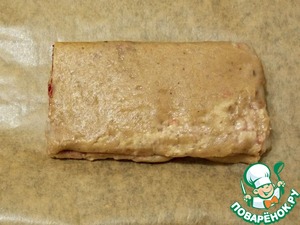Выпекать при t= 160 40 - 60 мин. Время не даю точное, так как многое зависит от Вашей духовки. Слой готов, когда он перестанет быть липким при прикосновение. Здесь есть еще одна ОСОБЕННОСТЬ. Если Вы хотите получить плотные конфеты, похожие на пастилу, то пеките как я уже написала. А если Вам по душе более нежные, похожие на суфле, то под противень поставьте поддон с водой. После того как поверхность подскажет Вам, что готово, уберите поддон с водой и дайте постоять 3-4 мин. еще. Вынимаем, переворачиваем и сразу снимаем пергамент. Он отходит прекрасно. Смазываем поверхность конфитюром.