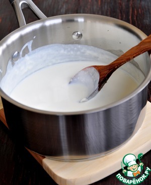 Подогреть в сотейнике сливки, добавить плавленый сыр.