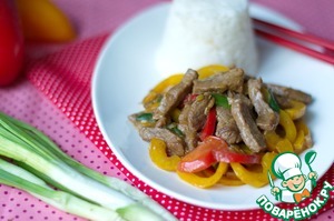 Стир-фрай — замечательное блюдо, точнее способ приготовления. Примерный перевод : «Жарь и мешай». Будем быстро мешать и жарить, чтобы мясо было сочным, вкусным, а перчик остался хрустящим.