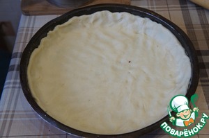 • Подошедшее тесто выложить в форму и растянуть руками по всей ее поверхности, сделав бортик.