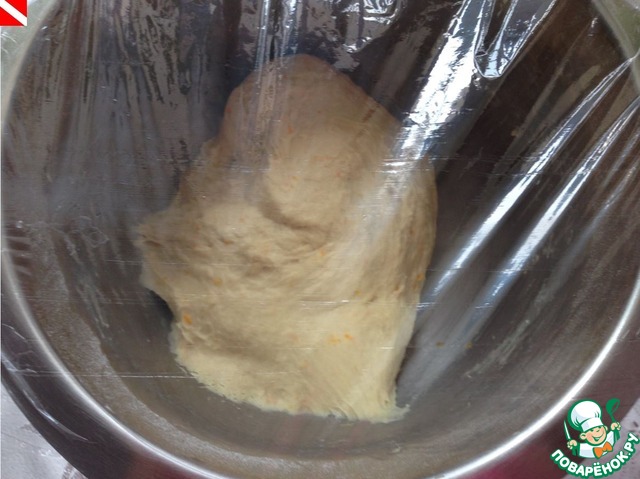 Накрываем пищевой пленкой и ставим в теплое местечко.