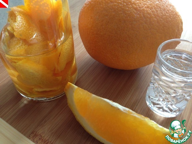 В стерилизованную баночку закладываем цедру, заливаем 50 мл холодной кипяченой воды и 50 мл водки. Держим в холодильнике от 1 недели.
