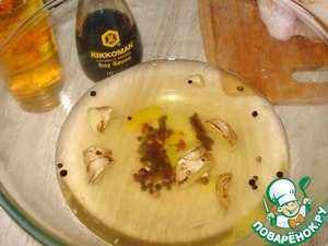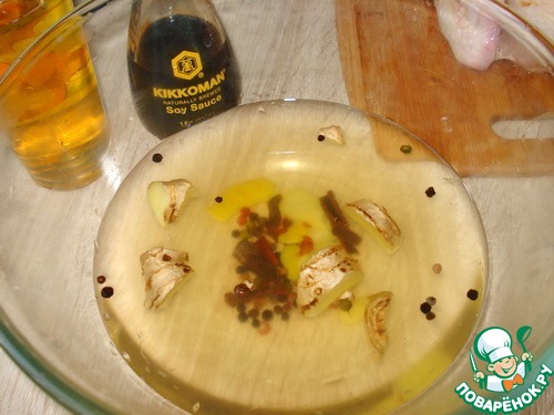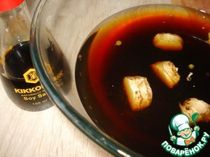 В остывший маринад добавляем соевый соус Kikkoman и светлое пиво.