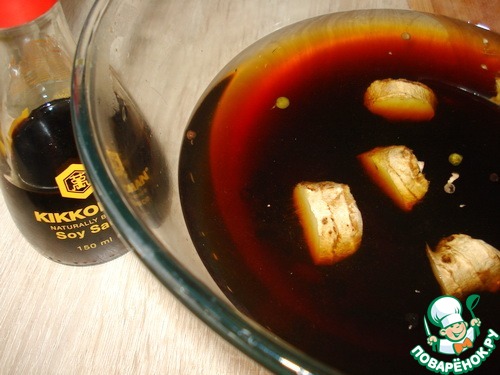 - Соевый соус (Kikkoman + 1 ст. ложка на глазурь Маринад) — 50 мл