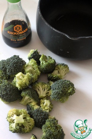 • Свежую брокколи разобрать на соцветия и положить в воду. Довести до кипения. Не забудьте добавить соевый соус.