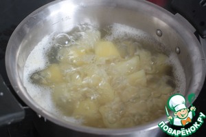 Картофель почистим, нарежем кубиками и отварим до готовности.