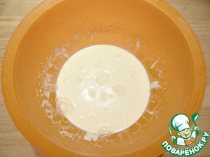 Готовлю заливку. Сметану взбиваю с яйцом.