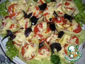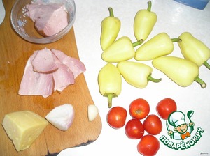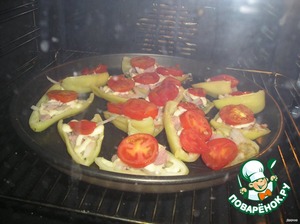Посвящается перцу. Навеяно перцами от Irina552 и Oksy. Запечeнный перчик с балычком, луком, помидоркой, майонезом с сырно-чесночным ароматом.