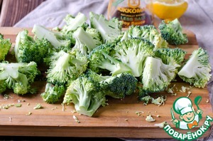 Капусту брокколи разобрать на соцветия и отварить в подсоленной воде в течение 5 минут.
