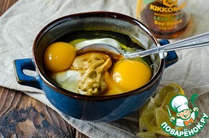 В небольшой миске смешать с помощью венчика сметану, яйца, горчицу, 1 ст. л. слабосоленого соевого соуса Kikoman, лимонный сок и поперчить.