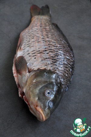 Карпа очистить от чешуи, выпотрошить, удалить жабры, хорошо помыть.