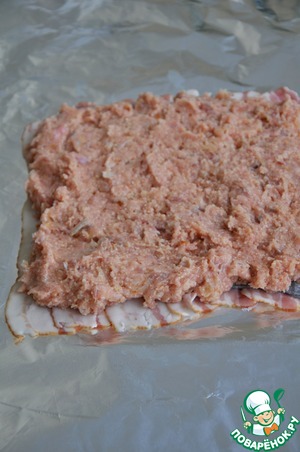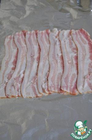 Фольгу сложить в несколько слоев, выстелить ее беконом внахлест.