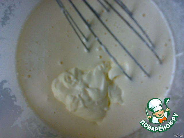 Добавляем сметану, продолжаем взбивать...
