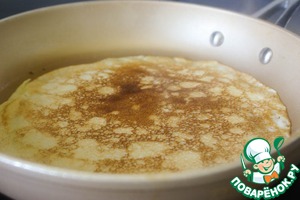 На хорошо разогретой сковороде, смазанной растительным маслом выпечь тоненькие блинчики.