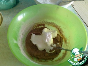 К нашей массе по одной ложке добавляем белки и аккуратно замешиваем тесто.
