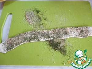 Раскатываем на смеси трав и специй. Так, чтобы специи остались на тесте.