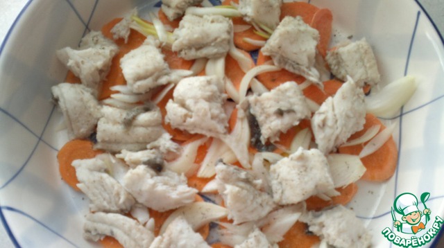 Далее филе рыбы (я порезала на кусочки) посолим абхазской солью или добавьте любые специи на свой вкус.