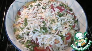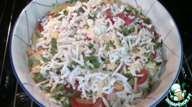 Достаем форму посыпаем сыром и зеленью и еще на 10-15 минут