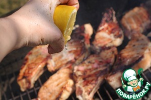 Готовить мясо на решетке, периодически поливая соком лимона.