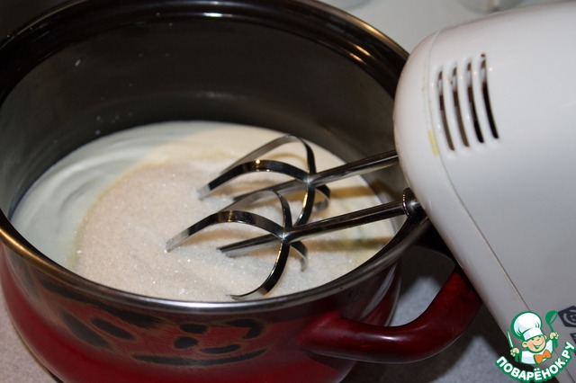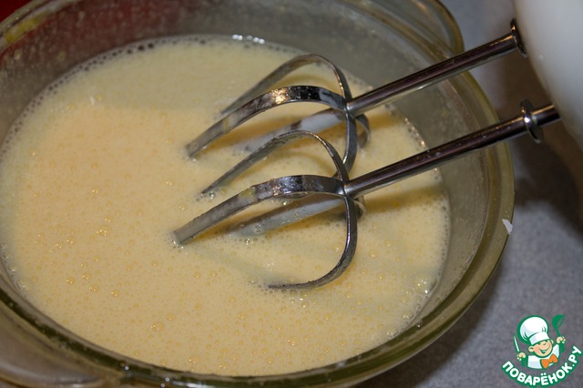 Яйца и 0,5 ст. сахара взбить до пышной массы.