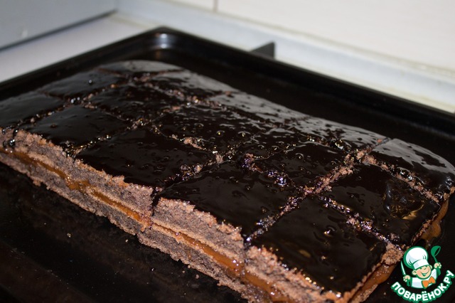 Покрываем пирожные глазурью и сразу же режем порционно.