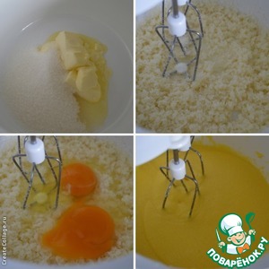 Мягкое масло вместе с сахаром взбить миксером до однородного состояния. Добавить яйца и снова взбить с помощью миксера несколько минут.