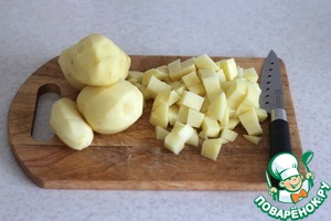 Картофель очистить и нарезать кубиками.