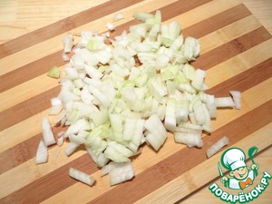 Белый репчатый лук чищу, мою и нарезаю кубиками.