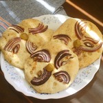 Перекладываю лепешки на противень (лепешки удобнее украшать сразу на противне). Противень маслом не смазываю.