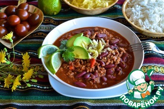 Это острое, ароматное рагу - визитная карточка так называемой кухни текс-мекс, то есть того варианта мексиканской еды, который готовят в Американском штате Техас. Обратите внимание, что в переводе это звучит не как "мясо с перцем", а как "перец с мясом". Изначально в Техасе его именно так и готовили, а фасоль и помидоры появились уже потом. Источник рецепта - книга "Про мясо". Рецепт адаптирован для мультиварки.