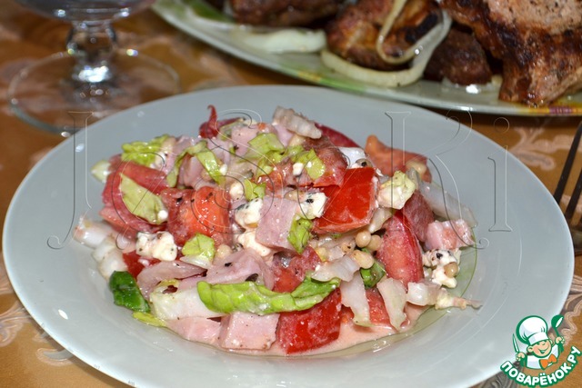 Рецепт «Салат с голубым сыром и ветчиной»: