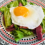 Рискну предложить вам приготовить вот такой простой салат, который может послужить сытным завтраком, а, также, стать неплохим дополнением обеда или ужина. Ингредиенты указаны на 1 порцию.