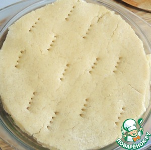 Делим тесто на 2 части. Каждую раскатываем и вырезаем круг такого же размера, как и ваша форма для выпечки.
