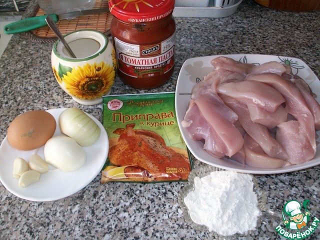 Ингредиенты для «Куриное филе в томатно-чесночном соусе»: