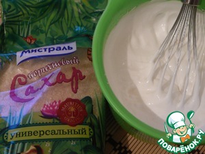 Затем взбиваем 1, 5 белка с парой ложек сахара.