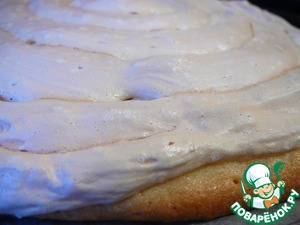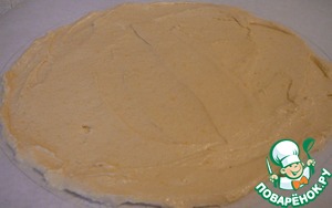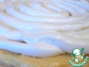 На сырое тесто наносим любым удобным нам способом часть взбитых белков и отправляем наш "бутерброд" в духовку (T180-200 C).