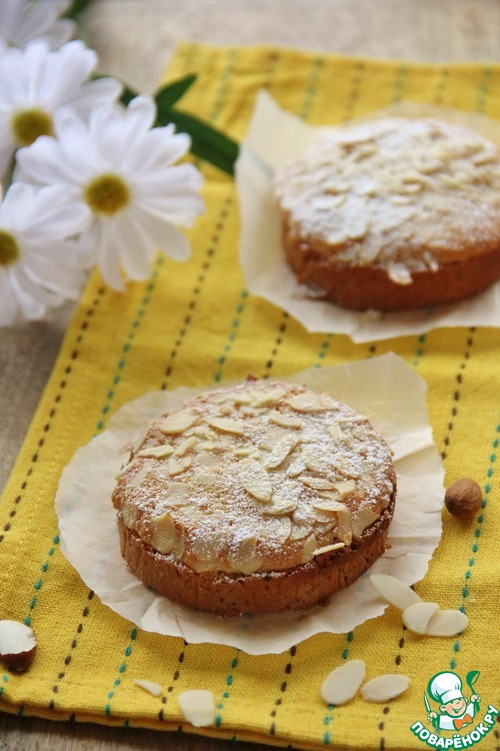 Посыпать миндальными лепестками. И запечь, в предварительно разогретой до 180 гр. духовке, в течении 15 мин. Возможно вам понадобиться меньше времени, надо чтобы просто зарумянилось.