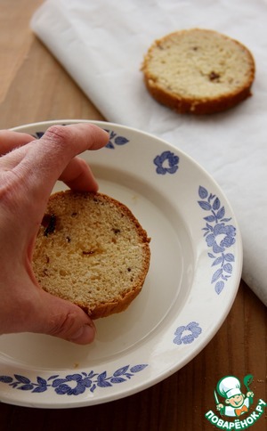 Каждый кусочек кулича смочить в остывшем сиропе и только одну строну.