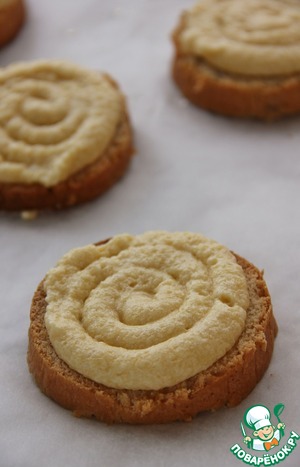 Смоченной стороной выложить на противень, затем с помощью кондитерского мешка нанести крем.