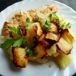 Картофель можно нарезать как вам больше нравится. Я режу крупными кубиками, посыпаю приправой для картофеля и кладу в мультиварку. Солить и лить масло не нужно, так как семга достаточно жирная рыбка и в процессе готовки жир и соленый сок стекут на картофель и пропитают его.