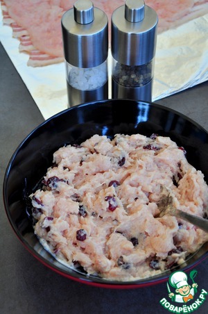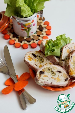 Рецепт «Рулет из курицы с карамболой и клюквой»: