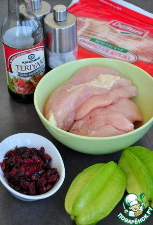Ингредиенты для «Рулет из курицы с карамболой и клюквой»: