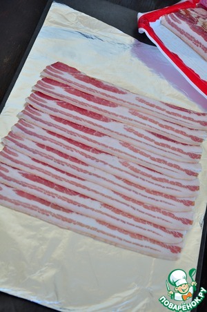 Выстелить бекон на фольгу чуть внахлест.