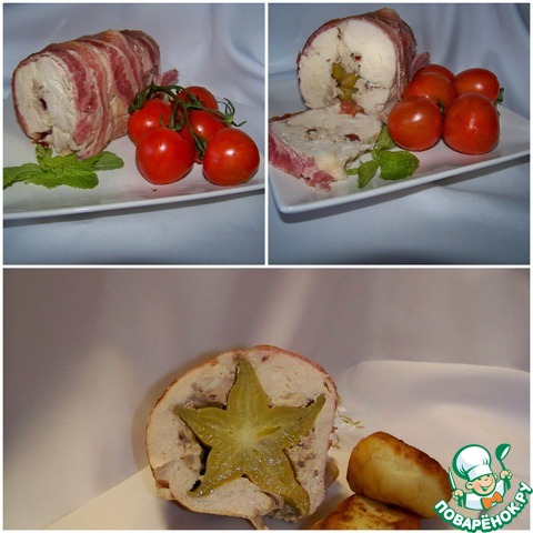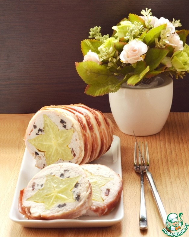 Рулет из курицы с карамболой и клюквой