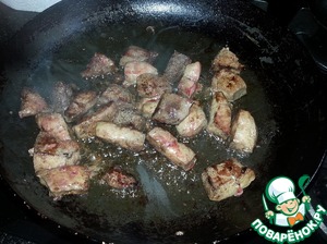 Печень очистить от пленок, порезать кубиками, обжарить на растительном масле.