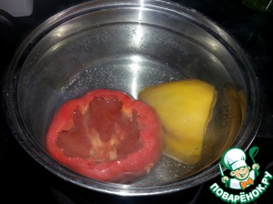 Перцы очищаем от сердцевинки и семян. И провариваем в воде 2-3 мин. после закипания.